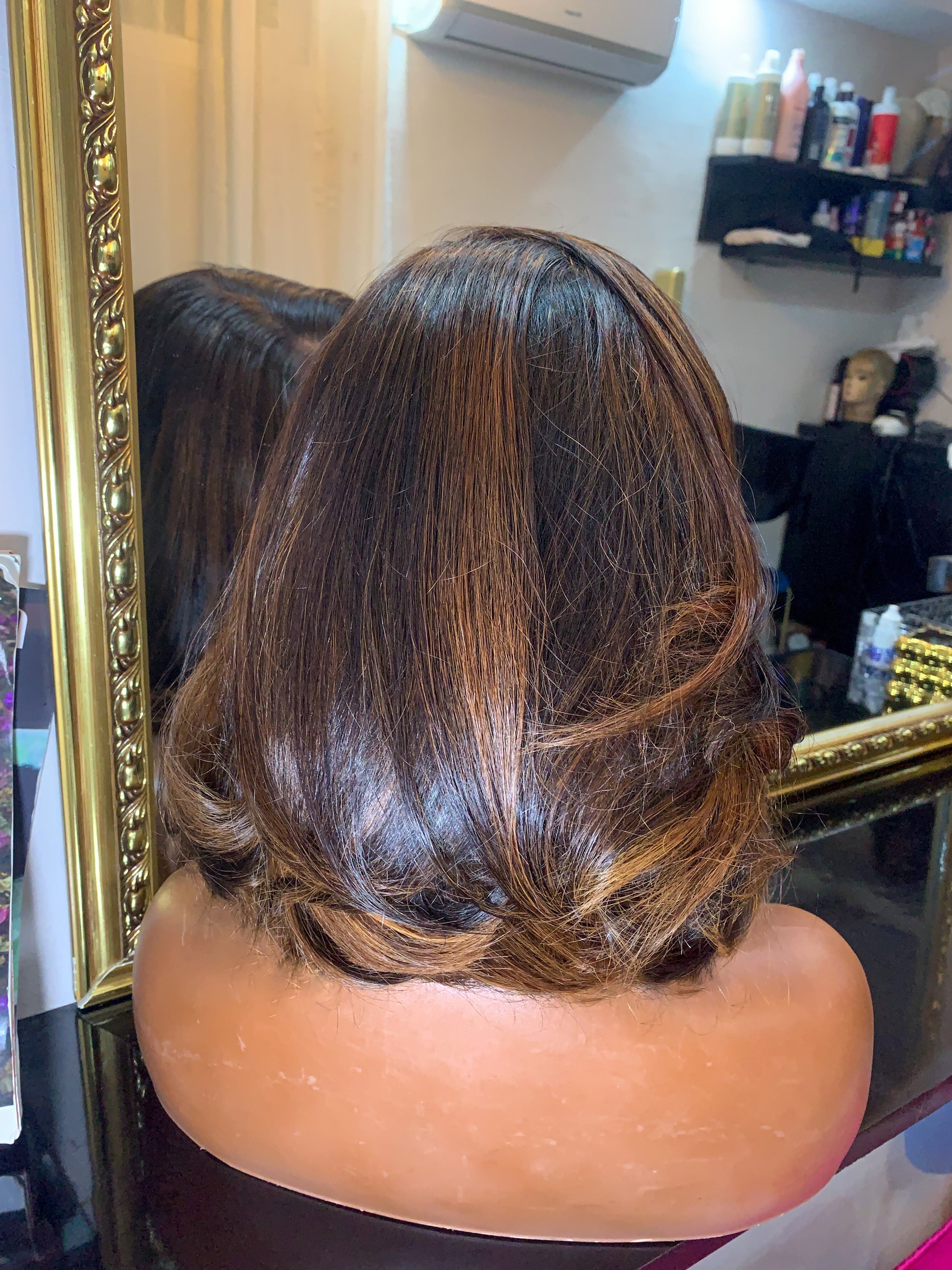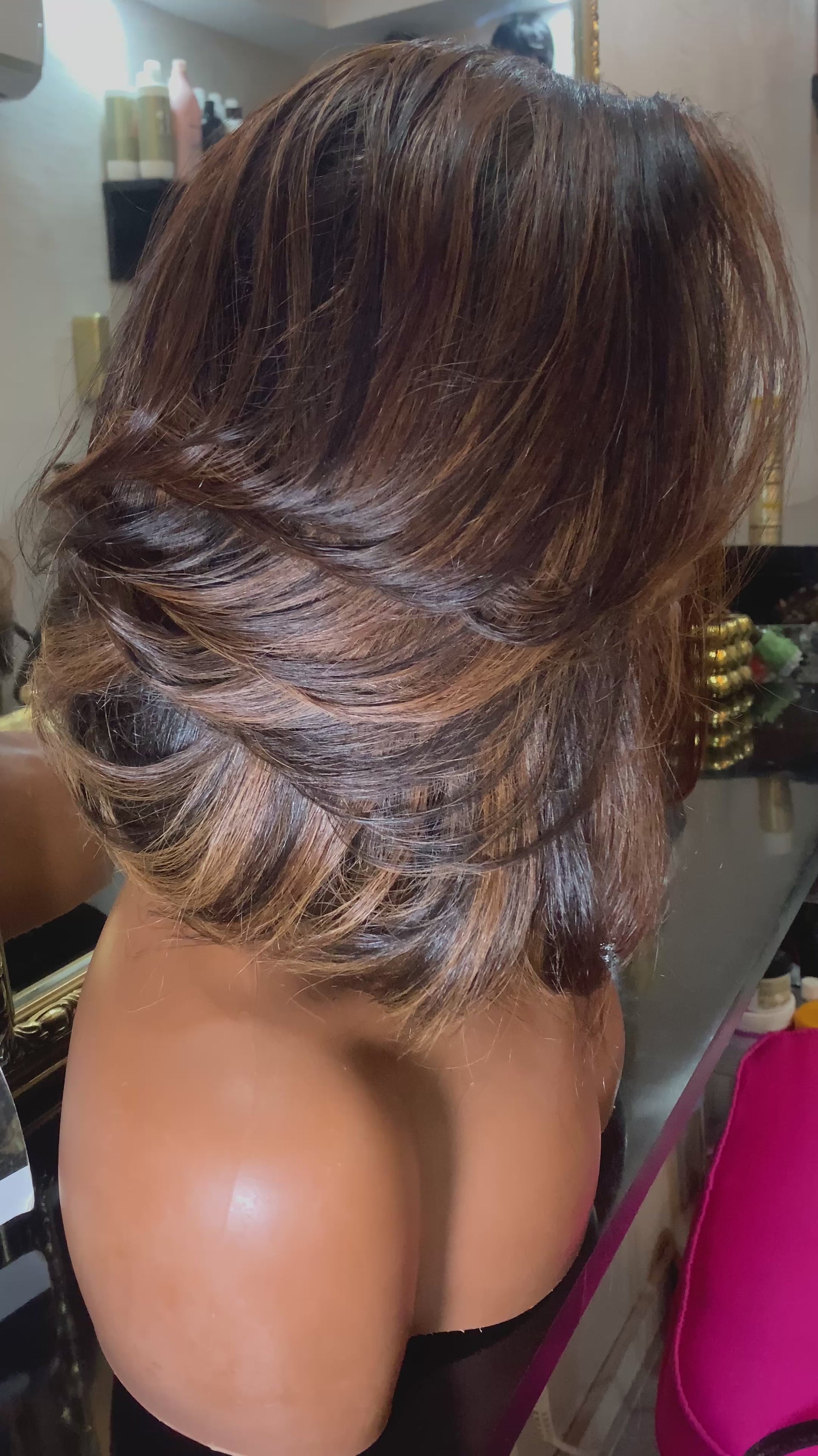 - Couleur: Balayage marron/cuivré