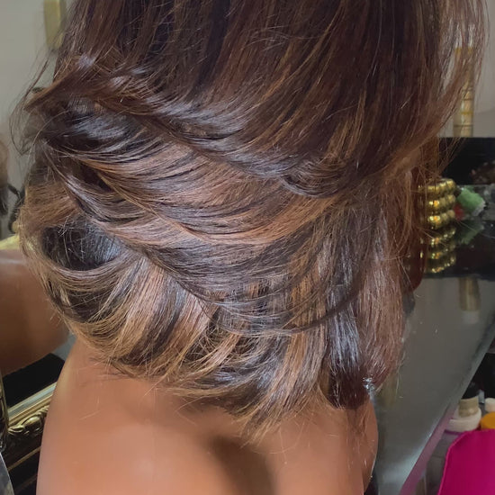 La perruque SOLA (lumière) est pensée pour sublimer votre beauté sans effort. Sa coloration chaude, ses nuancés dorées et son dégradé fluide apportent une lumière naturelle qui s’accorde aussi bien aux peaux claires qu’aux peaux mates.